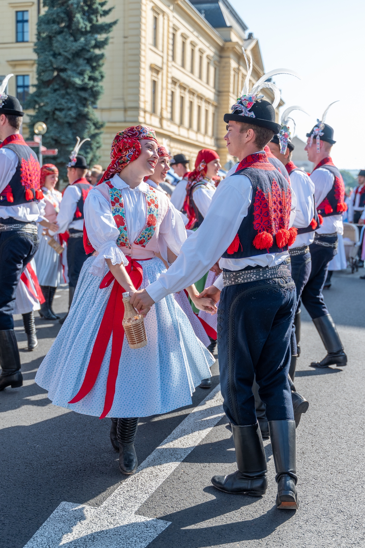Každé náměstí, park i ulice Uherského Hradiště zaplní v průběhu slavnostního víkendu krojovaní z různých koutů regionu. Město se rozzáří barvami krojů, rozezní melodiemi písní a provoní je víno a burčák.