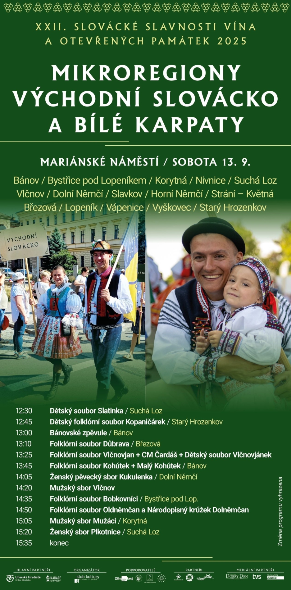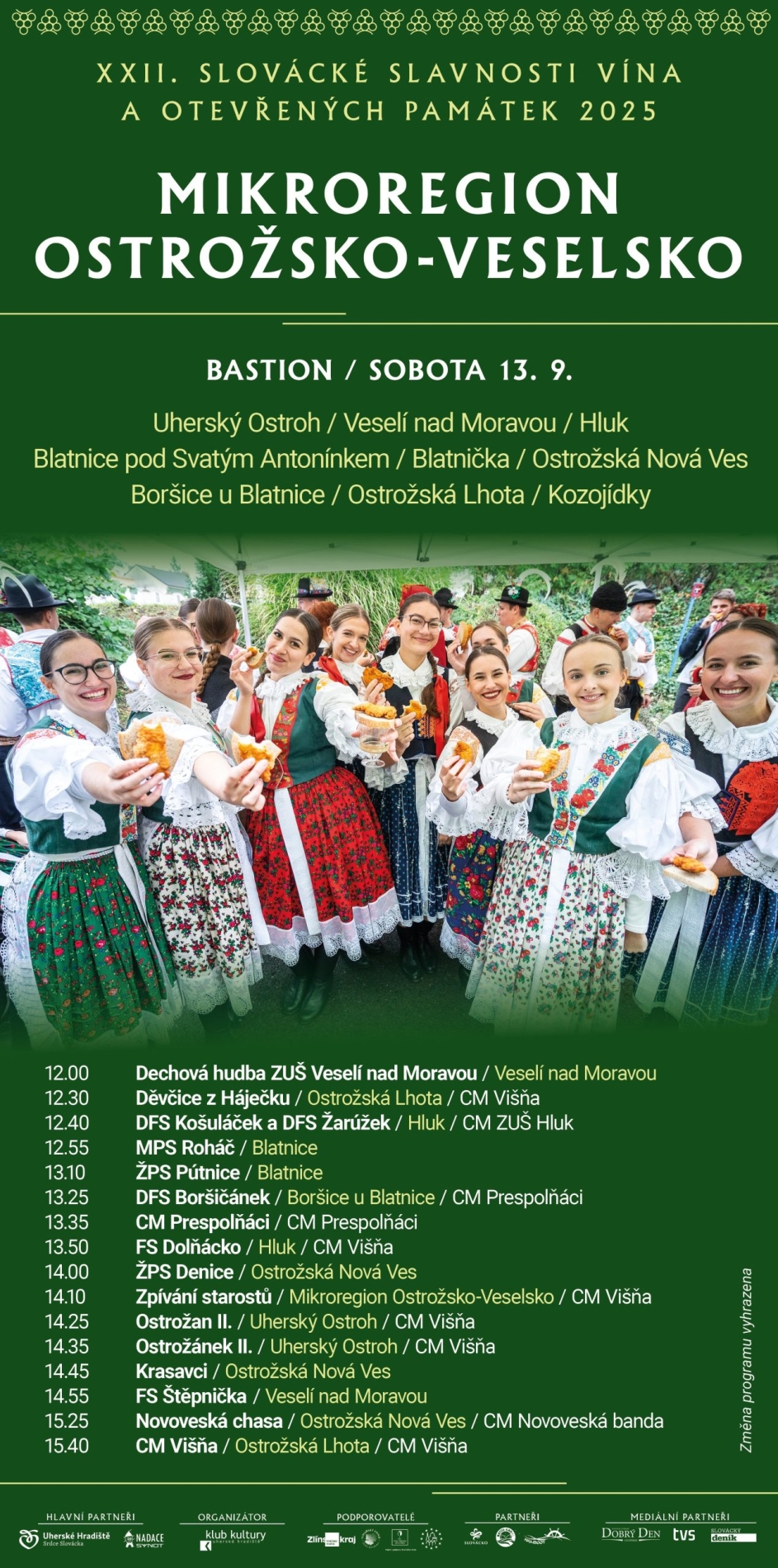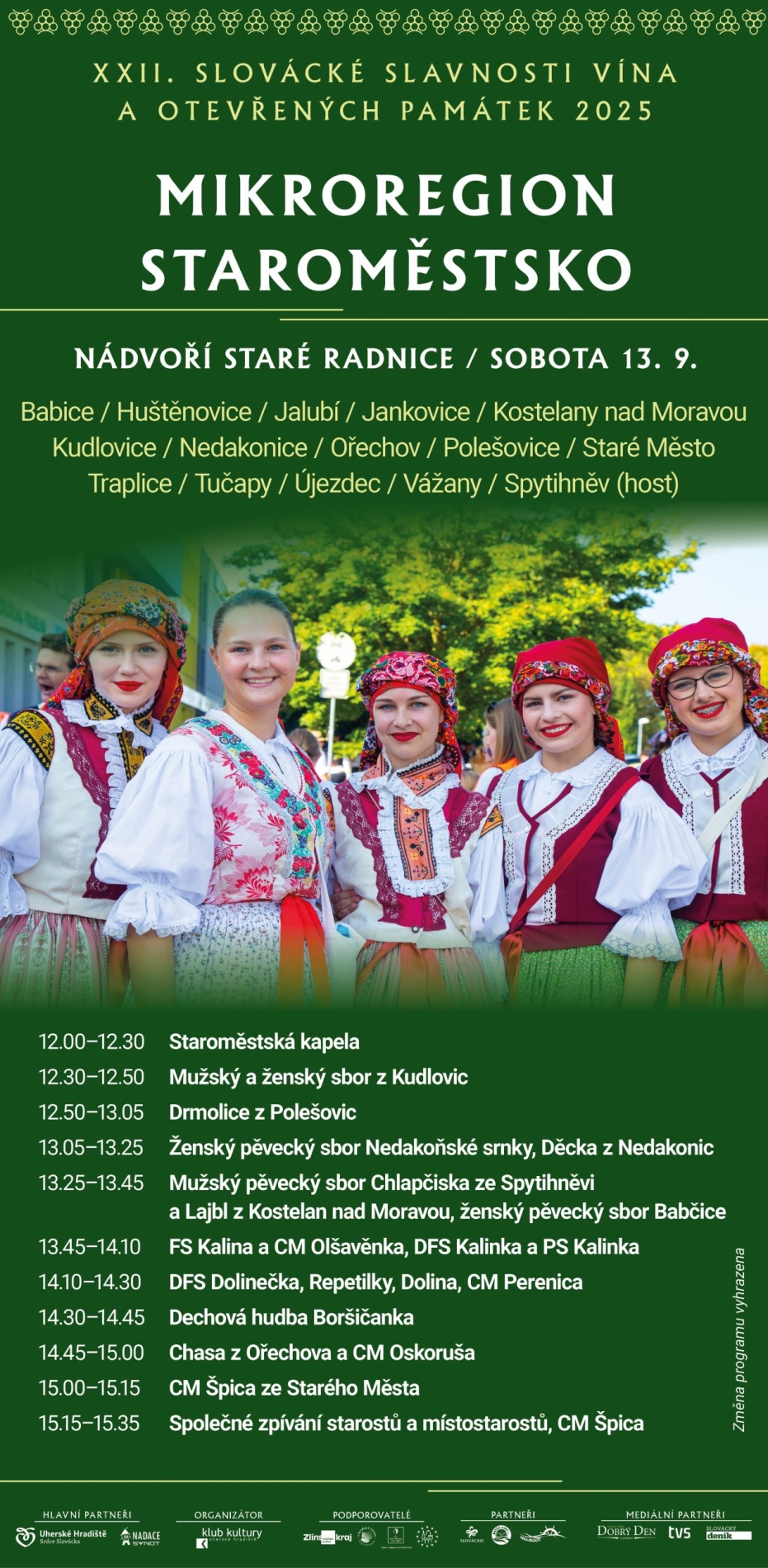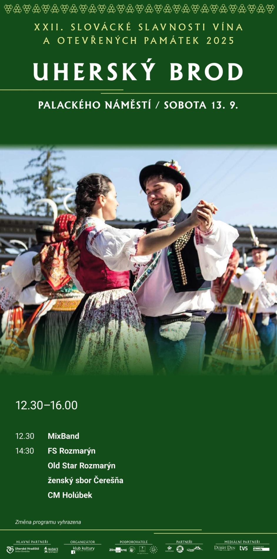 Podrobný program Slováckých slavností vína a otevřených památek 2025 najdete na www.slavnostivinauh.cz.