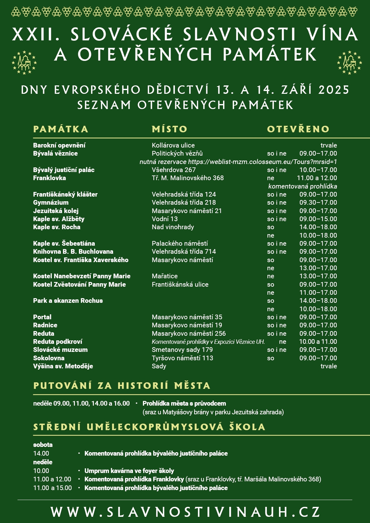 Zdroj textu a fotografií: město Uherské Hradiště – https://www.mesto-uh.cz/o-meste/tiskove-zpravy/srdce-slovacka-otevre-svou-naruc-nejvetsi-oslave-vina-tradic-a-folkloru-xxii-slovacke-slavnosti-vina-a-otevrenych-pamatek-se-blizi