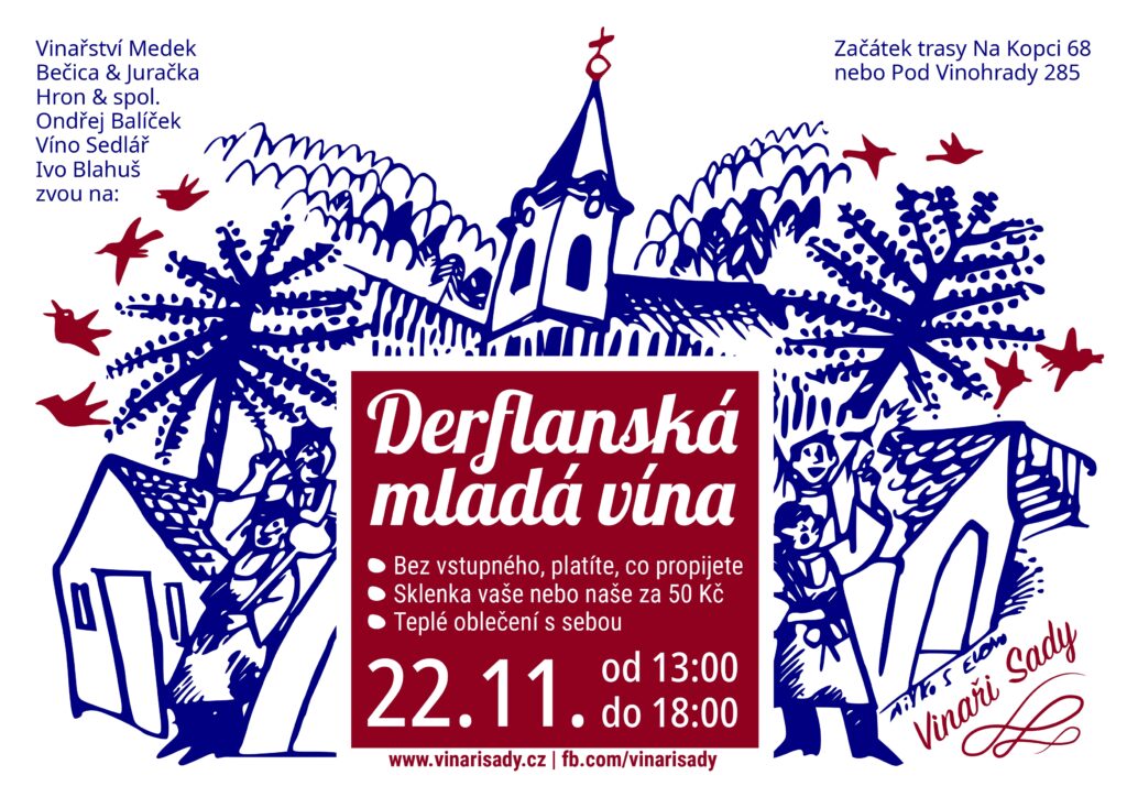 Otevíráme naše domácí sklepy a nalejeme mladá vína v jedné z nejzajímavějších fází po dokvašení, kdy se rozvíjí jejich budoucí potenciál a už ho lze prochutnat. Vstup zdarma, platí se vzorky. Sklenička vlastní, nebo u nás za 50 Kč. Teplé oblečení se hodí. Otevřou: Vinařství Medek, Bečica & Juračka, Hron & spol., Víno Sedlář, Ivo Blahuš, Ondřej Balíček.