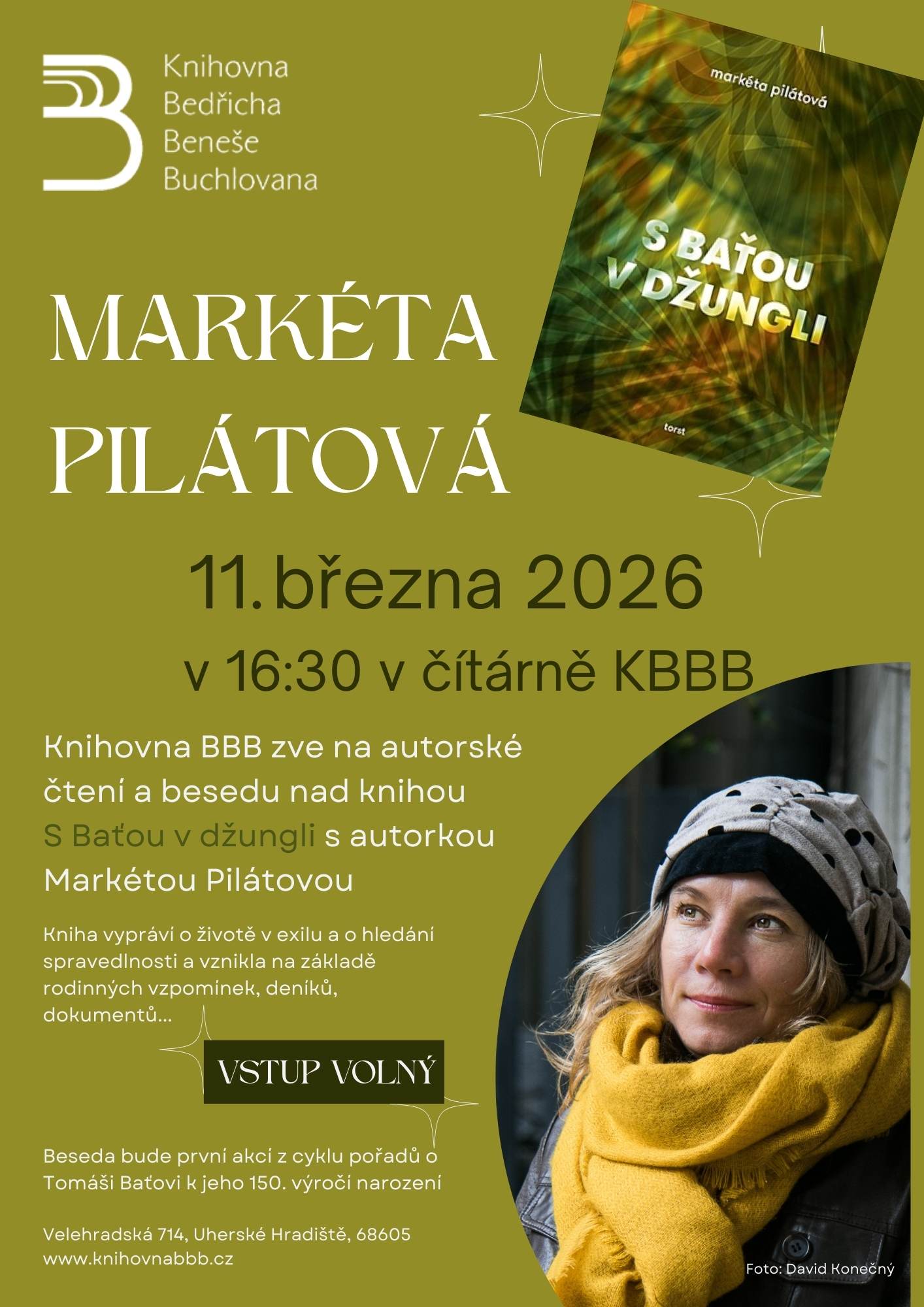 Knihovna Bedřicha Beneše Buchlovana zve na autorské čtení a besedu nad knihou S Baťou v džungli se spisovatelkou Markétou Pilátovou.
