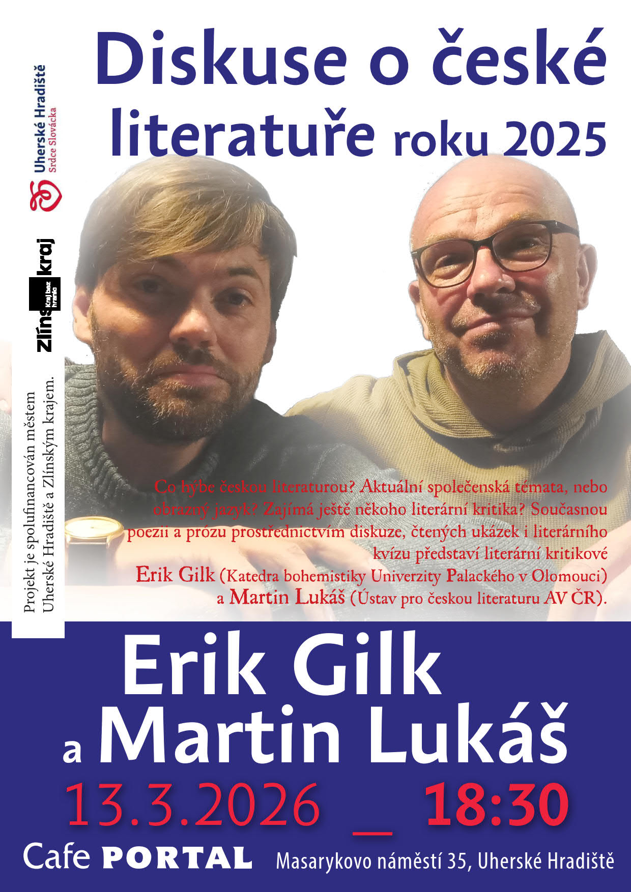 Co hýbe českou literaturou? Aktuální společenská témata, nebo obrazný jazyk? Zajímá ještě někoho literární kritika? Současnou poezii a prózu prostřednictvím diskuze, čtených ukázek i literárního kvízu představí literární kritikové Erik Gilk (Katedra bohemistiky Univerzity Palackého v Olomouci) a Martin Lukáš (Ústav pro českou literaturu AV ČR)