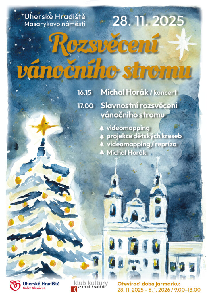 17:00 slavnostní rozsvěcení vánočního stromu s videomappingem a s projekcí dětských kreseb