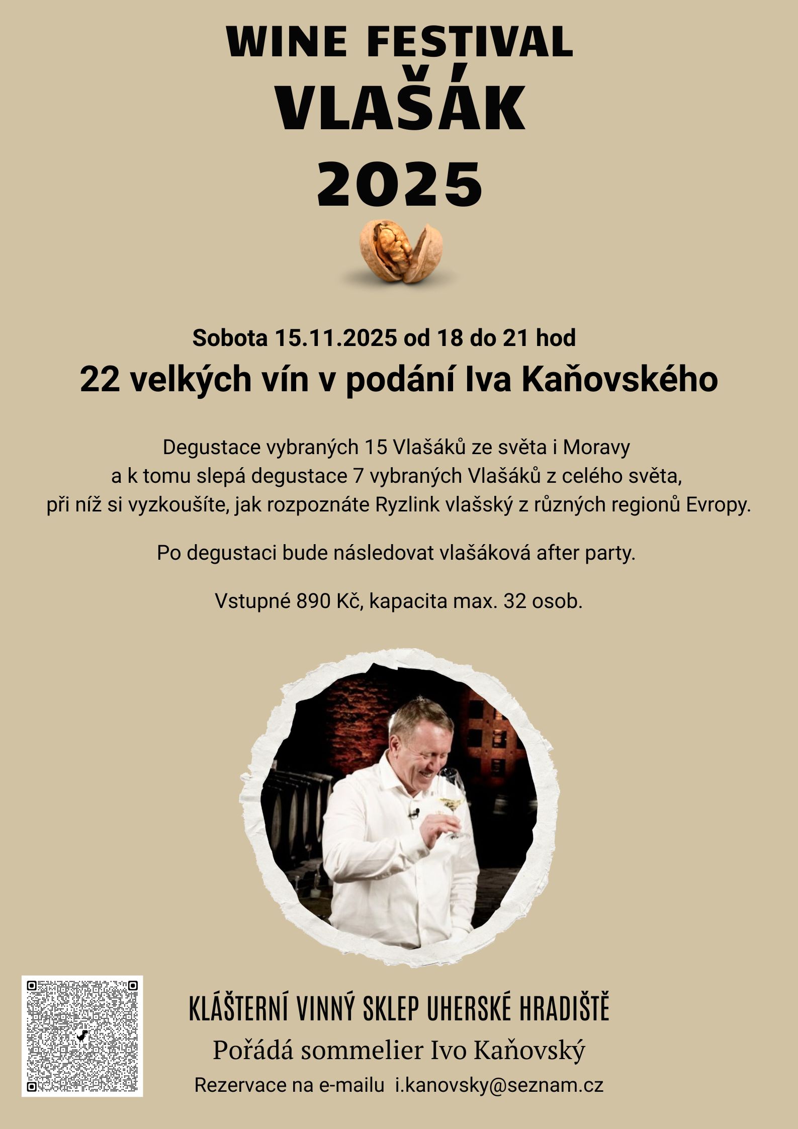 WINE FESTIVAL VLAŠÁK 2025 Závěrečný večer s Ivem, 22 velkých vín v podání Iva Kaňovského.