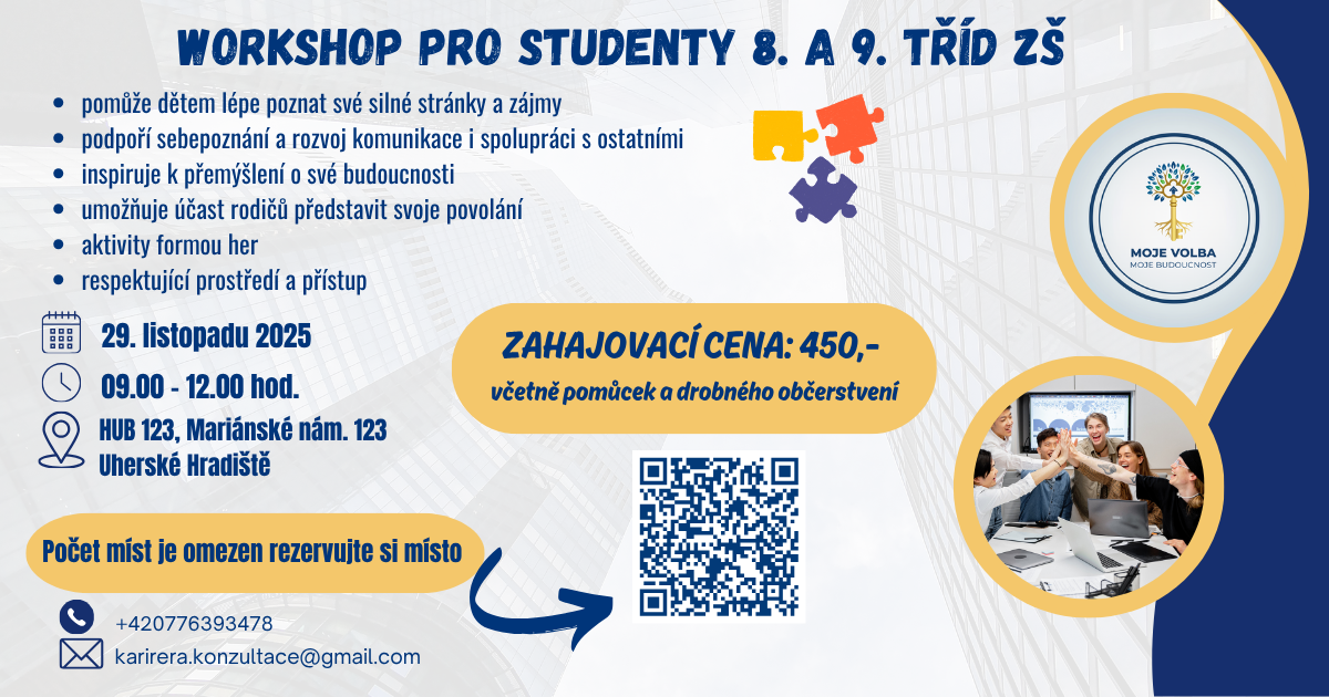 Rodiče a žáci 8. a 9. tříd zbystřete. Výběr střední školy se blíží! Chceš si vyzkoušet zábavné hry a aktivity, které ti pomohou lépe spolupracovat, komunikovat a poznat sám sebe? Budeme se věnovat studentům odhalovat jejich silné stránky. Během 3 hodin si vyzkouší interaktivní hry a spolupráci s ostatními.