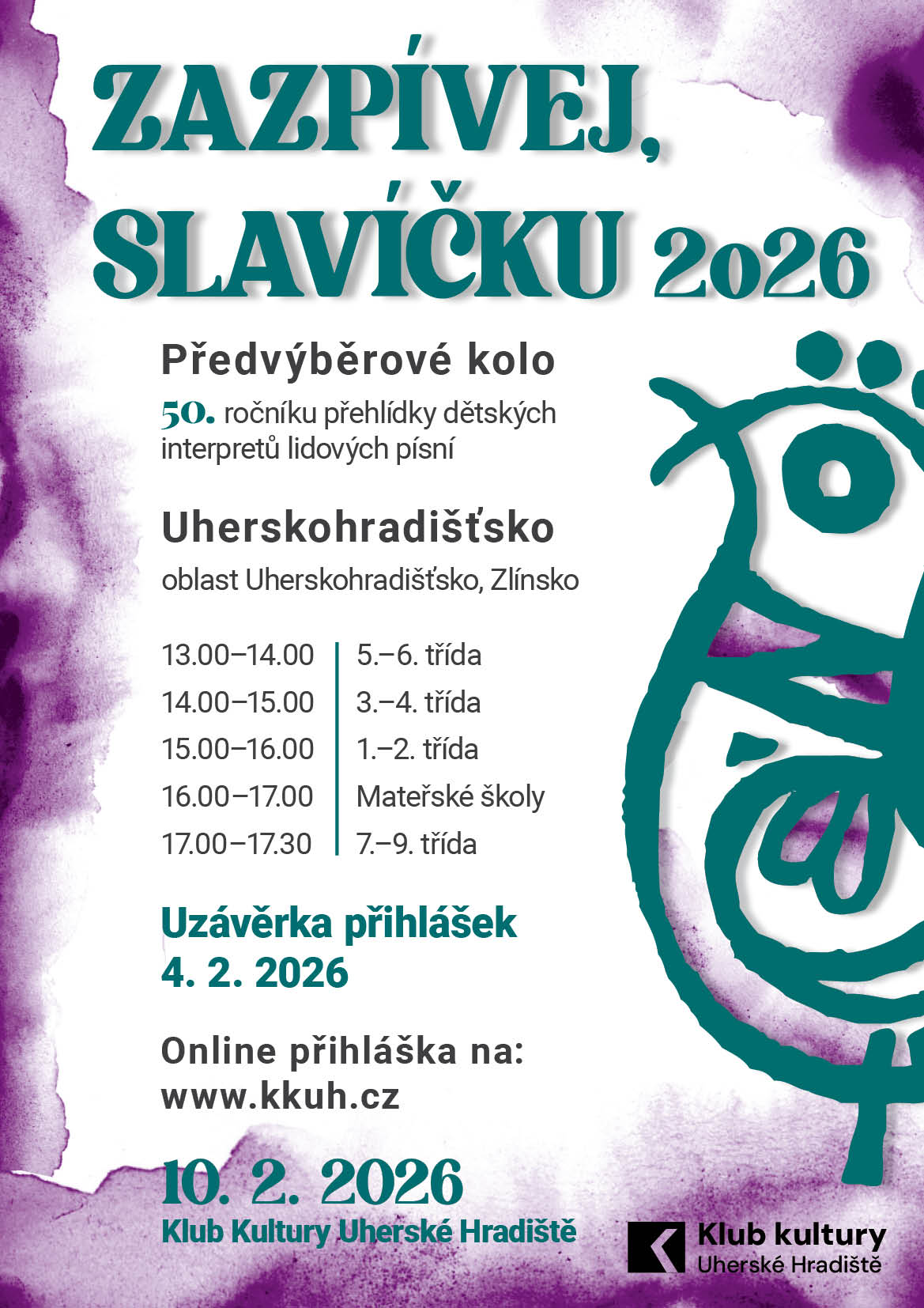 Rok se s rokem sešel a Klub kultury Uh. Hradiště opět vyhlašuje předvýběrová kola postupové přehlídky dětských interpretů lidových písní - ZAZPÍVEJ, SLAVÍČKU 2026.