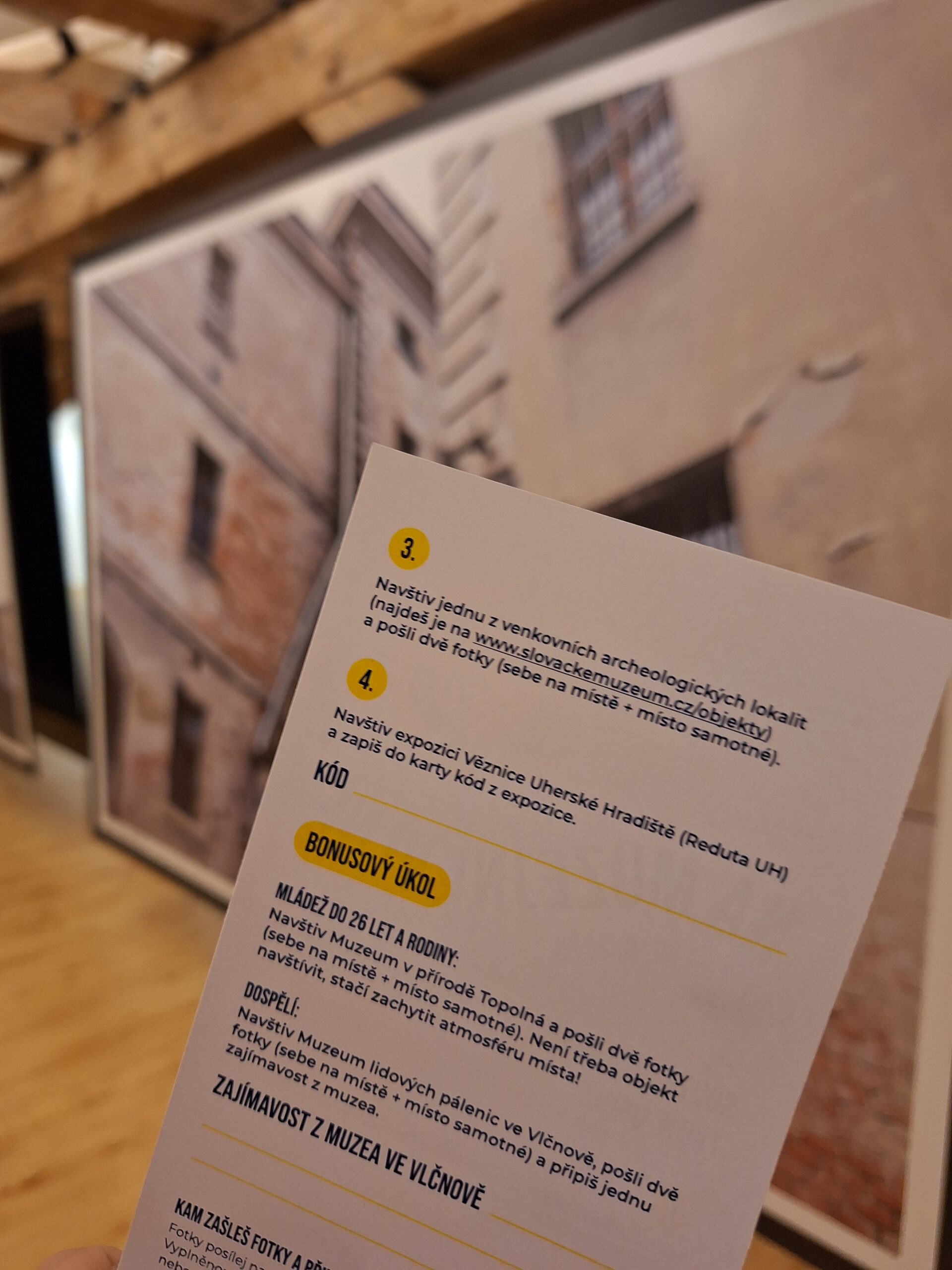 A pak už jen zbývá putovat po objektech a expozicích muzea, fotit a plnit úkoly. Putuje se například do Slováckého muzea nebo do Památníku Velké Moravy – Cyrilometodějského centra ve Starém Městě či do Galerie Slováckého muzea.