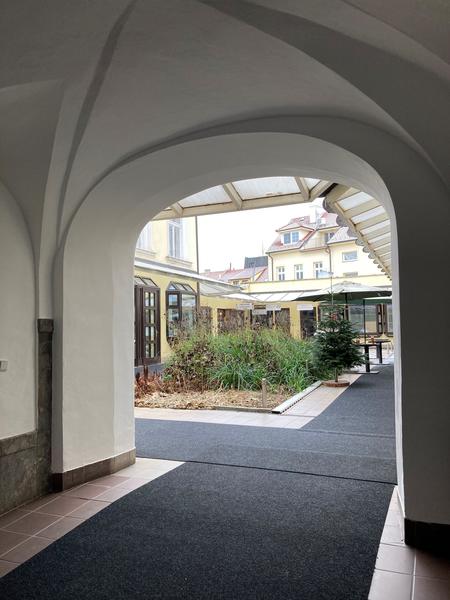 Na nádvoří domu byla v roce 1994 umístěna fontána, autorem je keramik Emil Kobza. Jádro fontány tvoří stylizovaný květ, ze kterého stéká voda. Obklopen je okvětními lístky plovoucími na vodní hladině.