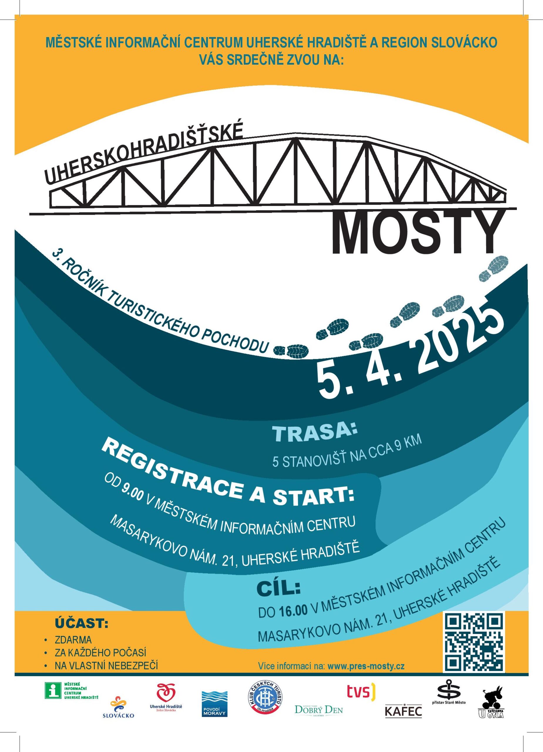 V sobotu 5. dubna 2025 se uskuteční již třetí ročník oblíbeného turistického pochodu MOSTY, který vás provede přes malebné mosty a lávky Uherskohradišťska. Letos se k akci opět připojují i okolní města Staré Město a Kunovice, což slibuje ještě bohatší zážitek.
