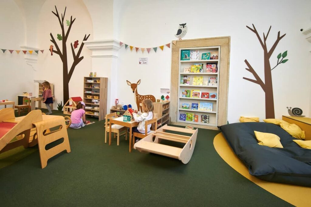 Dětká herna je koncipovaná tak, aby si tam na své přišly děti různého věku. Je vybavena v duchu pedagogiky Marie Montessori a je tak trochu pozváním a nahlédnutím do způsobu třídění, uložení pomůcek a zacházení s hračkami.